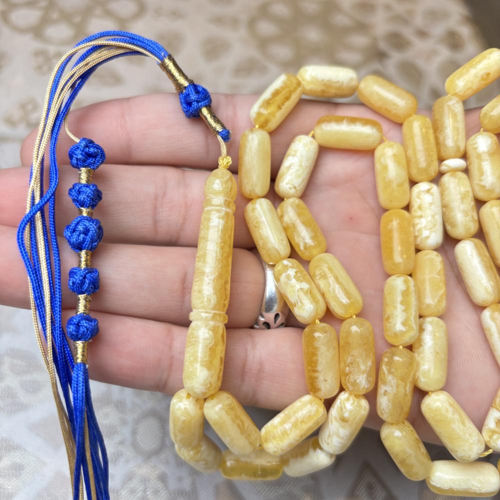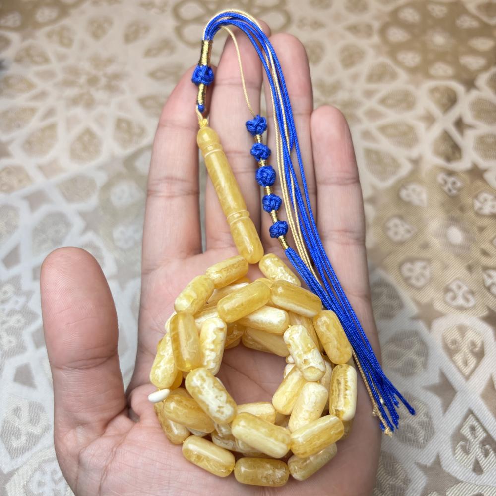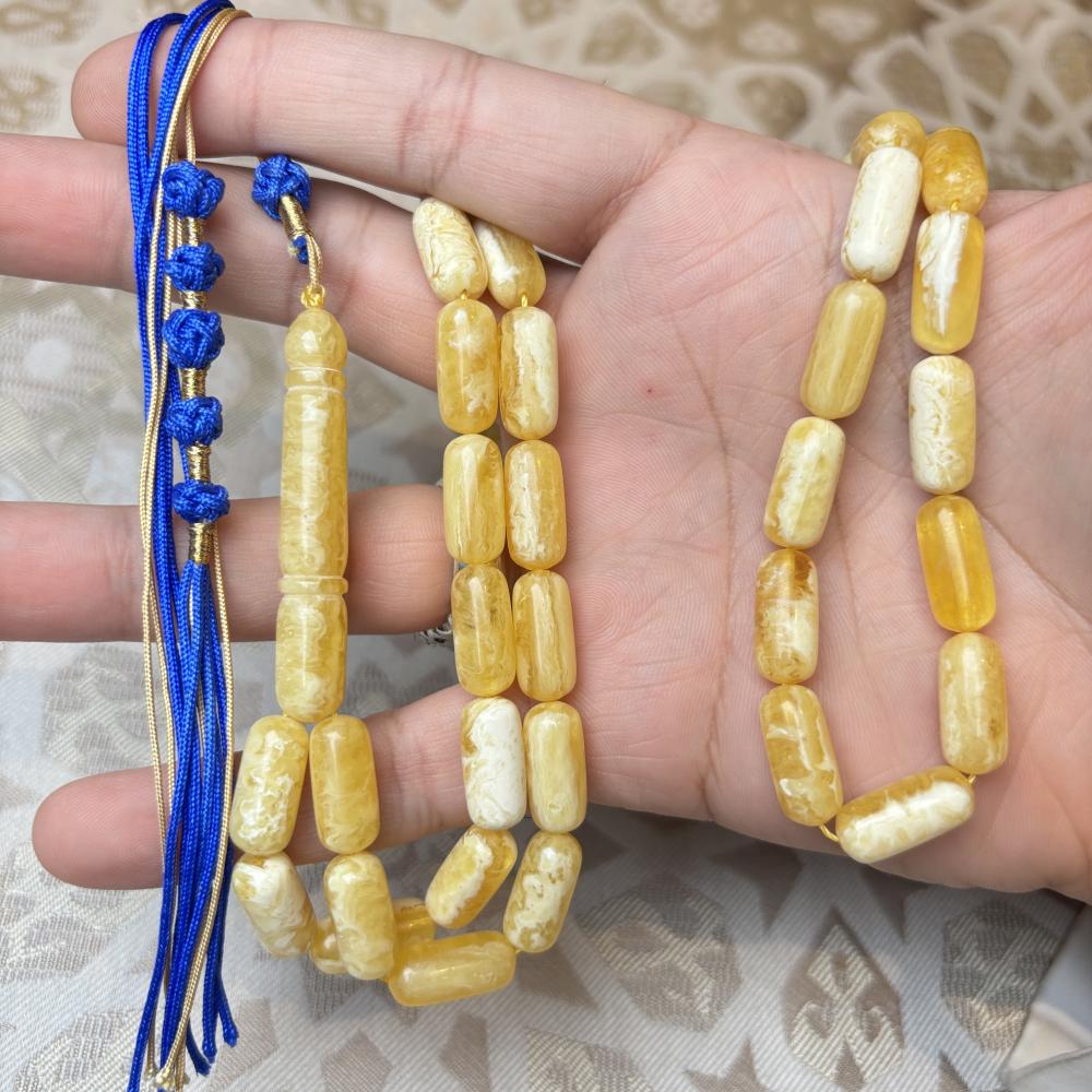 تألّق بلمسة من الفخامة الطبيعية مع سبحة كهرمان كلنقرادي مضغوط صنوبري الشكل، التي تجمع بين الأصالة ودقة الصنعة.