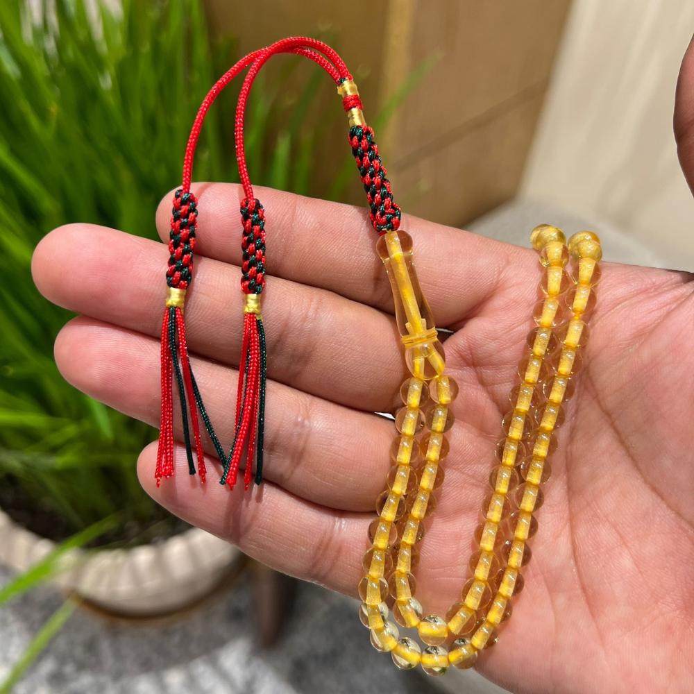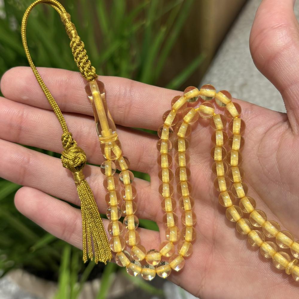 تألق بجمال هذا المسباح المصنوع من خامة المستكة الفاخرة بلون أصفر شفاف. تصميم أنيق وهادئ يجمع بين البساطة والجاذبية، ليمنحك تجربة سبحة فريدة تناسب الذوق الرفيع.