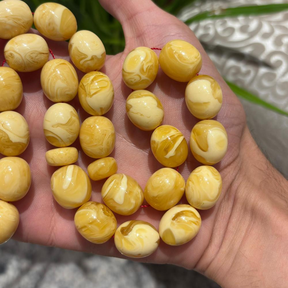 • مقاس الحبات: 15*13 ملم – حجم مثالي يبرز جمال الكهرمان